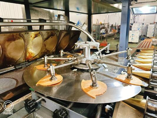 Machine automatique de cuisson de cornets de glace au sucre, idéale pour une production continue à volume moyen
